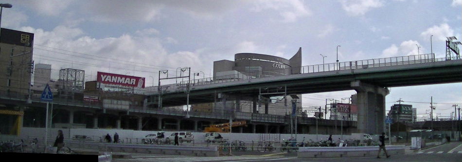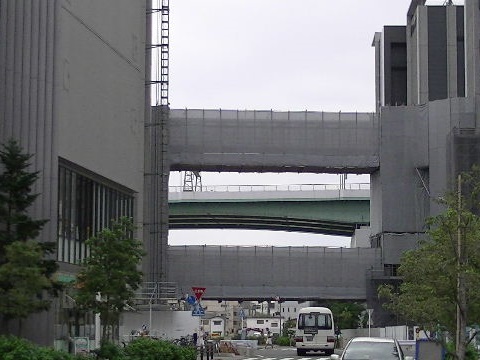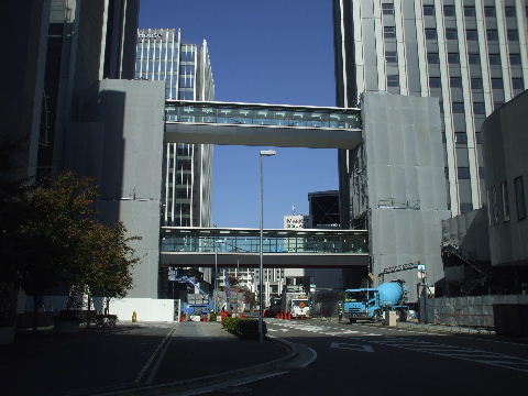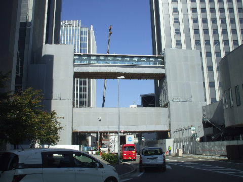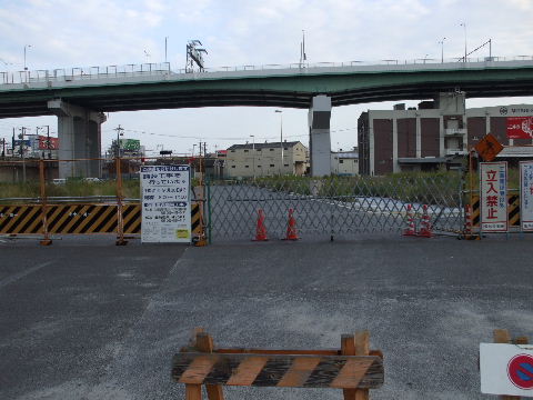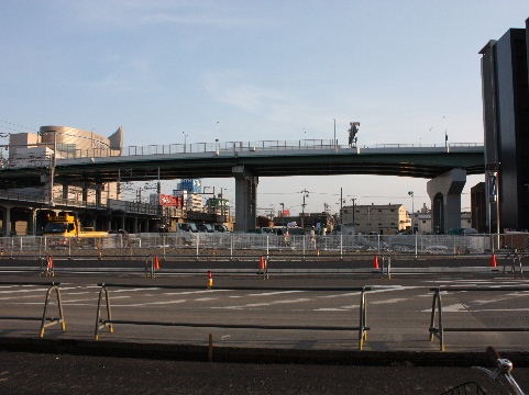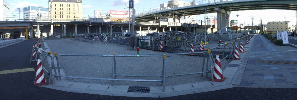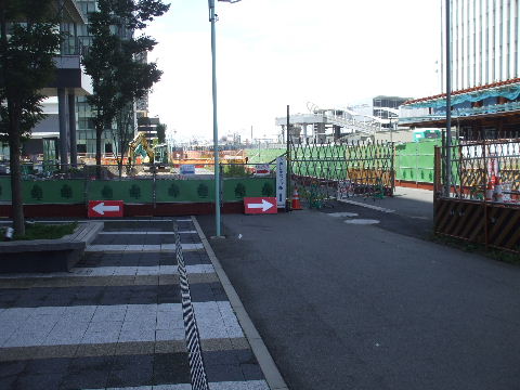 事が始まっている駅 からの歩道橋につながる部分か? |