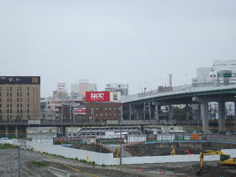 2010年7月24日。ミッドから見る愛大現場。用地を掘り下げて基礎工事をやっている様子。
