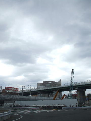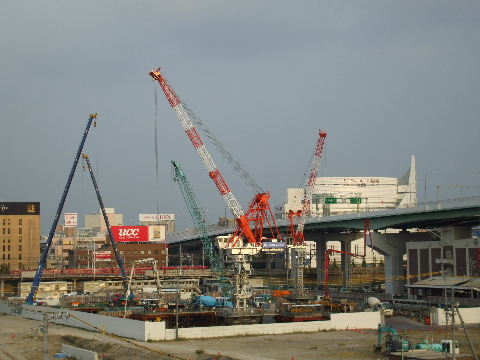 | 2011年9月17日。東側に新たにクレーン現わる。歩道橋を架けたのよりは小さそうだが同じような形。