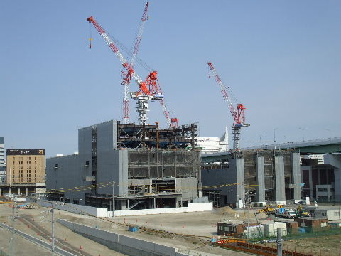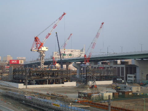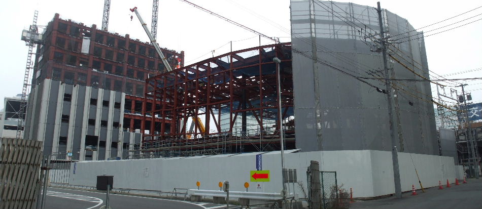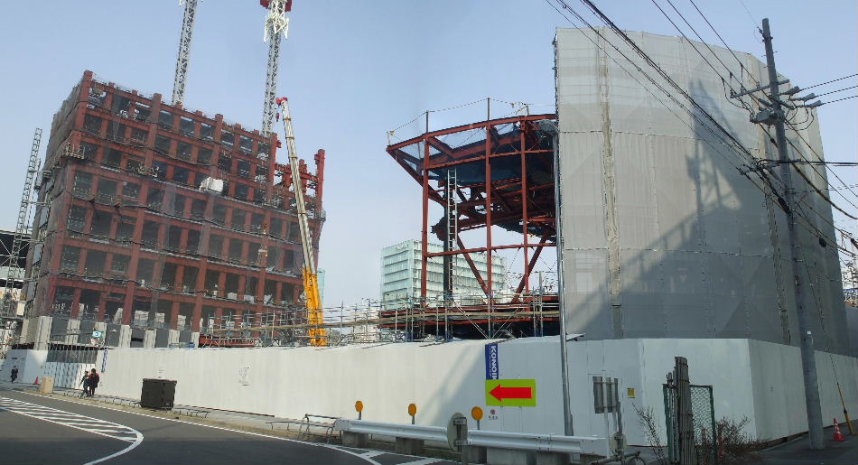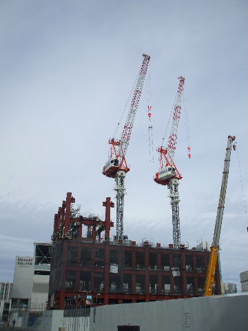 | 2011年2月5日。組み立てていた鉄骨の右(南)隣にもう一棟鉄骨組み立てを始めている。