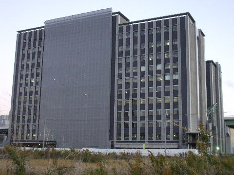 | 2012年3月17日。ビル南東角から見る。右が北でラ・バーモやJICAが見える。将来は手前南へ道路が延びて六反ガー