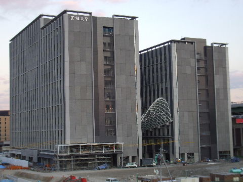 2012年3月30日。駅からの通路が通れるようになり早速今日は何かあるようで学生が行き来する。 |