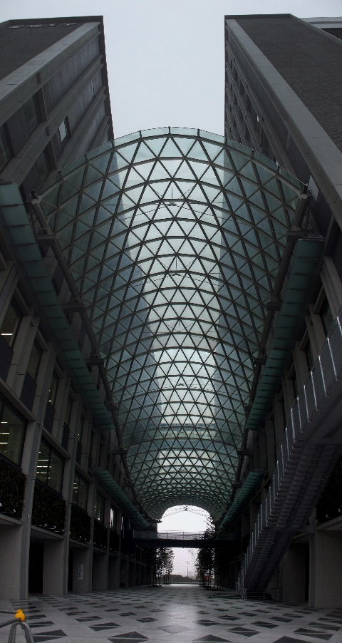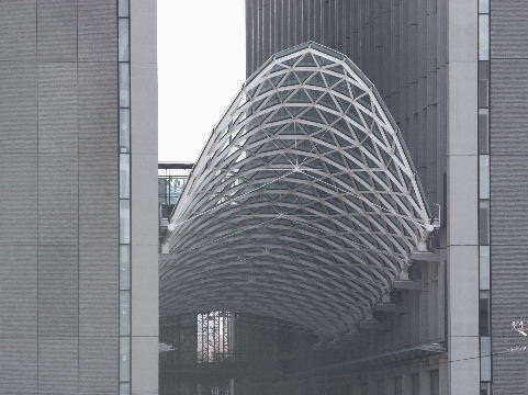 2017月04月01日。さらに進むと超高層棟とつなぐ歩道橋へ。渡った