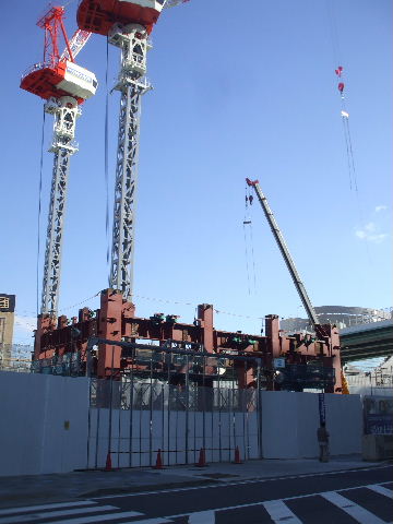 | 2012年1月14日。東側でも取り付け工事が始まっている。