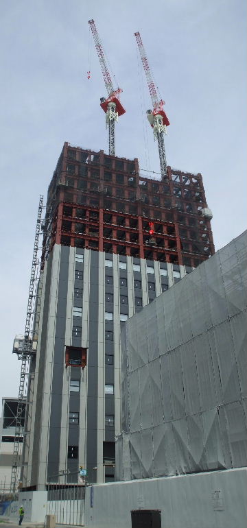 2011年6月5日。鉄骨組み、左が10階、右が8階へ。