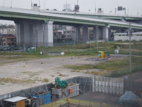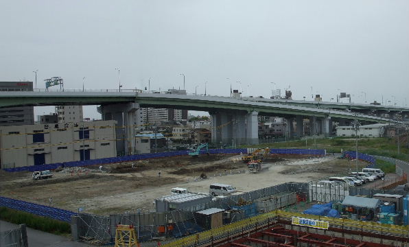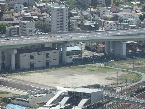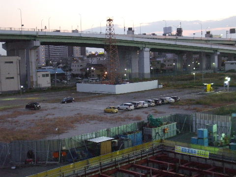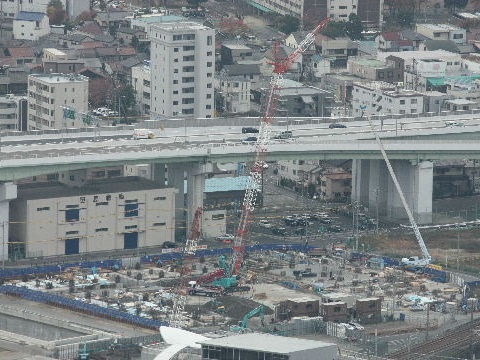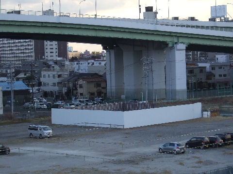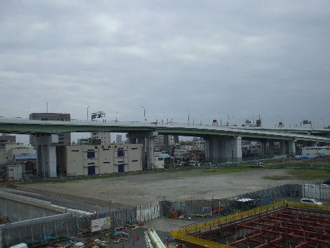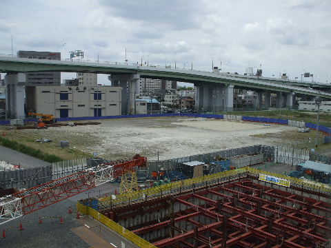 2012年4月28日。ミッドから見る。椿町線沿い(東)、高速沿い(南)、 西沿いのコの字形で建つようだ。 |