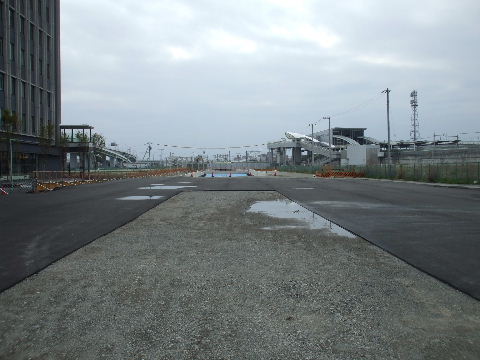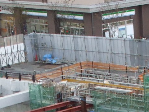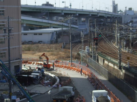 | 2015年01月31日。ビルの西、北に沿って駅へ入って来る道とビル周り の整備中。 |
