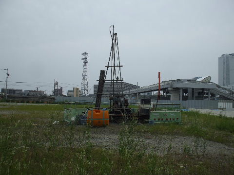 | 2012年6月24日。地質調査? | 2012年9月1日。看板出る。地質調査が続いている。 |