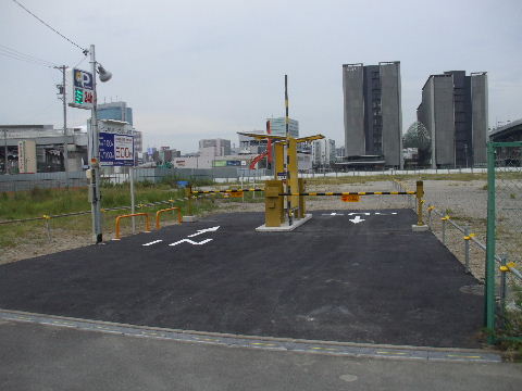2012年9月29日。出入口のゲート部だけアスファルト舗装、あとは ロープで線を引いただけ。今日は一 台も置いてない。中川区側か らしか入ってこれないのが痛いところか。 |