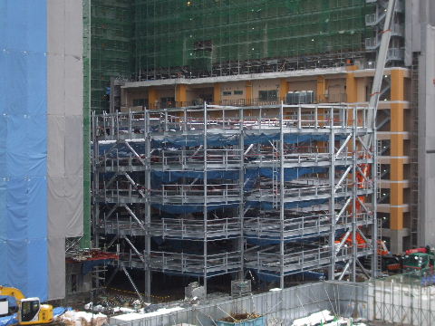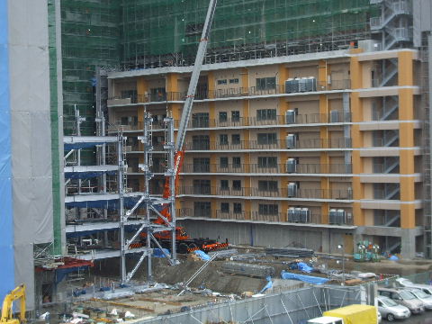 | 2014年4月19日。高さ、階数で1/3まで来た。コの字型の中に小さい建物も建てている。 |