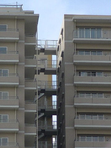 | 2015年02月21日。3棟の建物をつなぐ通路 が上から下まである 。上の方は高所恐怖症 には結構怖そう。 |