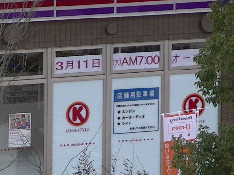 | 2015年03月07日。駐車場名。 | 2015年03月07日。あのコンビニ開店日。MINI-STYLEと書いてある