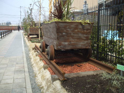 | 2015年03月14日。西側には笹島駅の跡地だからということか、トロ ッコ型プランターが2輌。 |