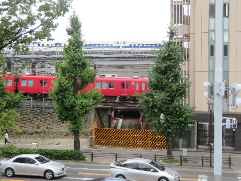 2021年08月07日。名鉄の奥にJRの高架橋。 |