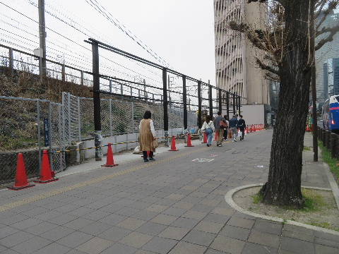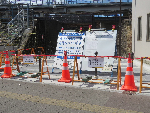 | 2022年03月30日。通路通れるようになる。 | 2022年03月30日。上の新幹線はスピードが遅いので音は そんなにしないがそれより新幹線の向こう側にちょうど 東海道線から中央線への渡り線があってその分岐器を 電車が通る時の継ぎ目の音が結構大きいように感じる。 |