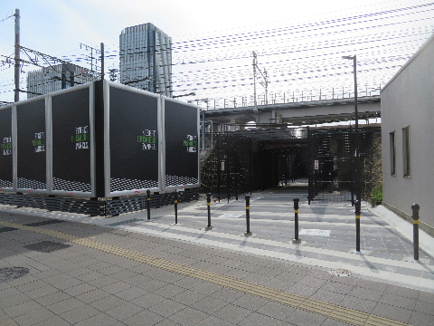 | 2021年08月07日。歩道は一つ南の結婚式場とZEPPの 間の架道橋脇につながる。これで名古屋駅から地上を 歩いてきた人と地下道を歩いてきた人の流れが分離 できる。 |
