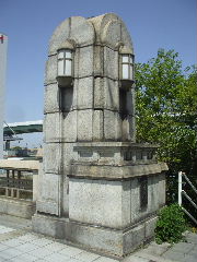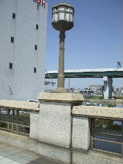 | 親柱の橋名 | 完成年月ー昭和八年五月 | 凝った作りの親柱 | 欄干中央の街燈 |