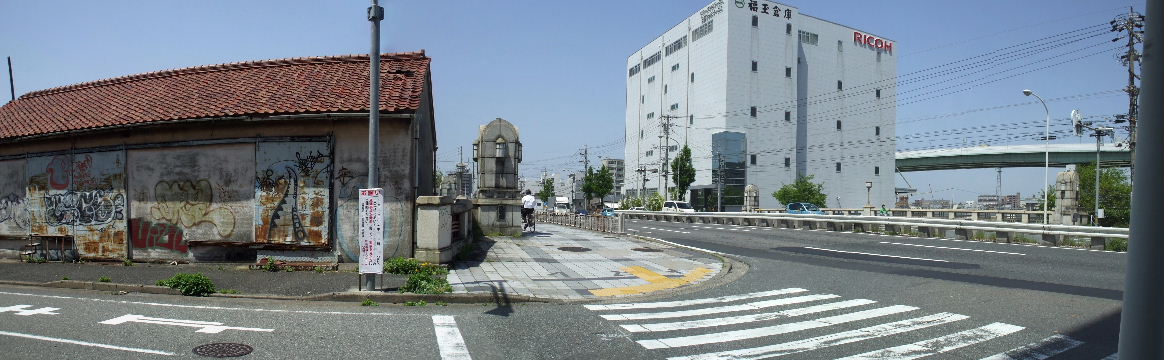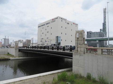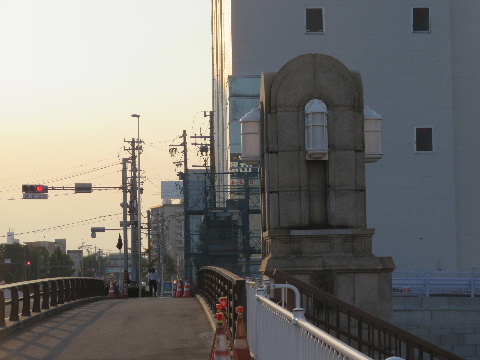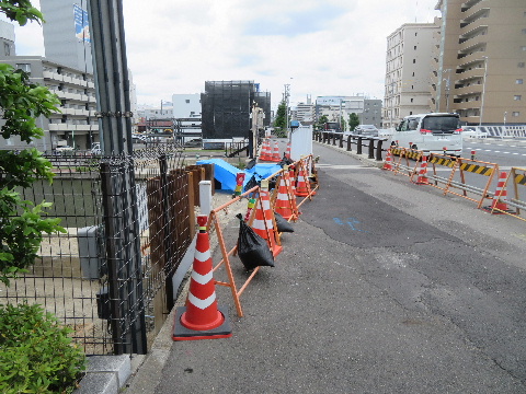 中川運河最上流に架かり、ささしまライブにも近い運河橋(運河通)で工事が始まっていますので見物する事にします。