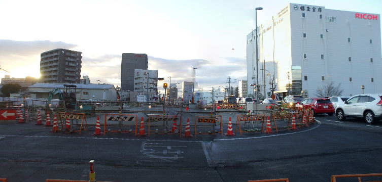 2014年1月19日。先週の移動に続き東行き車線が元西行き車線 跡に移動。 |