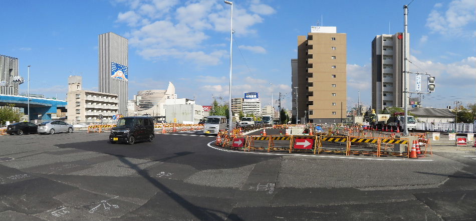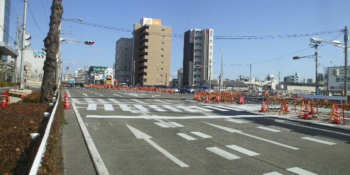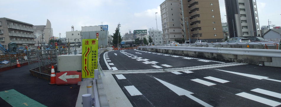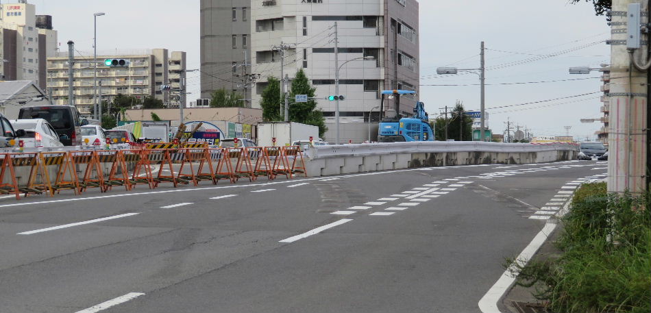 | 2016年10月02日。西から。車線をひき直して虎柵を外せば。 |