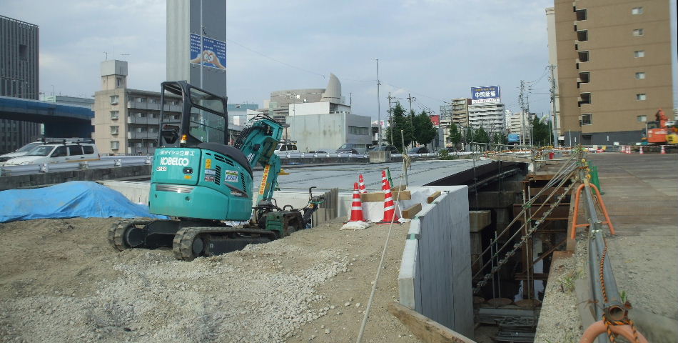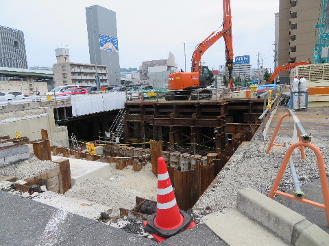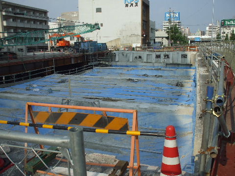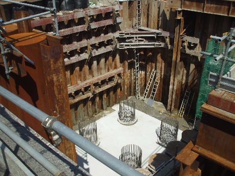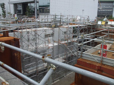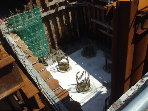 | 2015年8月15日。東行き車線橋台基礎出来る。西側。 |