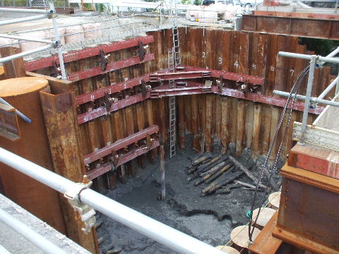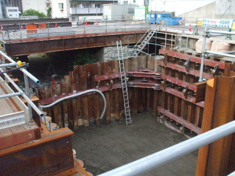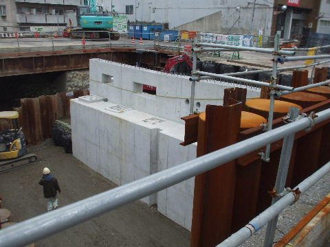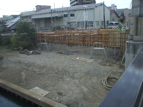 まで何も見えなかったが漸く橋脚の基礎作りか。 |