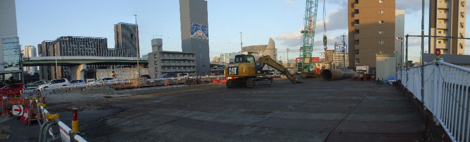 2023年11月05日。西側はまだ取り付け中で横に頭が 転がっている。 |