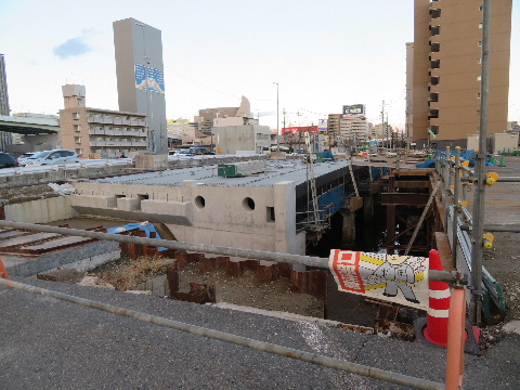 | 2017年02月11日。左側、東寄りに穴があいて運河の水面が見えている。 |