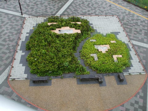 ささしまライブ駅前の植え込み。下で見るとただの植え込