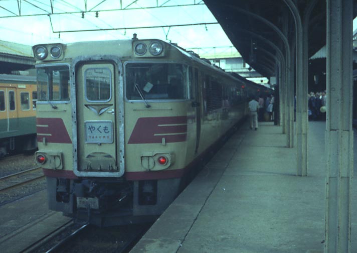 少し昔岡山駅で見た列車 1974年、岡山駅での写真です ?「しおじ」は一日5往復で新大阪〜広島、下関間を走っていた。 ?「日向」は一日一往復で大阪〜宮崎間を走っていた。前はボンネットタイプ、後ろは貫通タイプ。 ?「つばめ」は一日8往復で岡山〜博多、熊本、西鹿児島間を走っていた。 ?「はと」は一日5往復で岡山〜下関間を走っていた。 ?「みどり」は一日2往復で大阪〜大分間、岡山〜宮崎間を走っていた。 ?「安芸」は一日3往復で岡山〜呉、広島間(呉線経由)、「山陽」は一日6往復で岡山〜広島、下関間を走っていた。 ?「やくも」は一日6往復で岡山〜米子、松江、出雲市、益田間を走っていた。