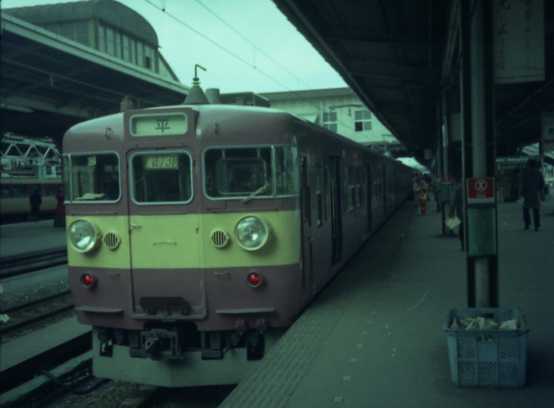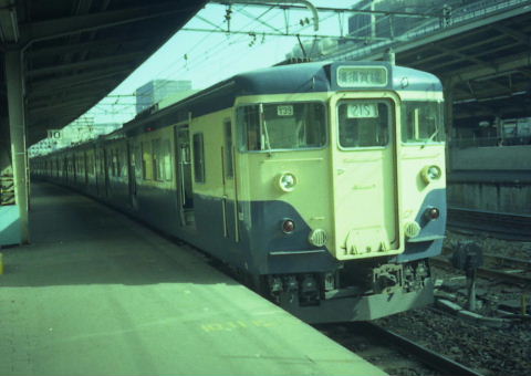 | 横須賀線113系電車。1974年東京駅。この頃はまだ横須 賀線と東海道線が線路を共用していたので横須賀線も地 上のホーム。 |
