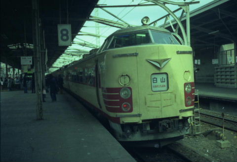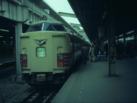 | 常磐線401系。1974年上野駅。 | 485系「白山」。上野ー金沢間を信越、北陸線経由で一日 3往復。1974年上野駅。 |