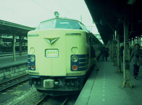 485系「ひばり」。上野ー仙台間を一日13往復走っていた。 1974年上野駅。 | 583系「みちのく」。上野ー青森間を常磐線経由で昼行一 日1往復。所要8時間55分。1974年上野駅。 |
