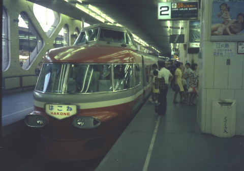 | 小田急3100系。1973年新宿駅。 | 小田急3000系。1973年新宿駅。 |