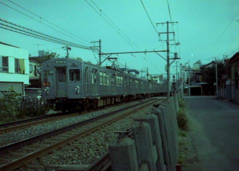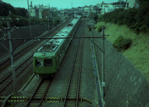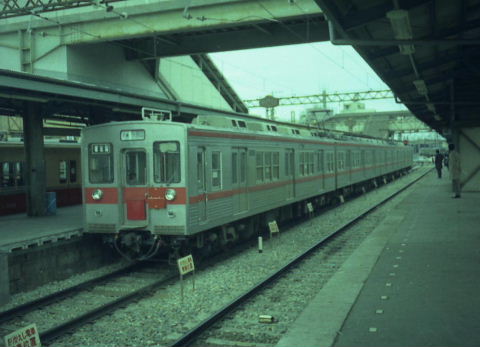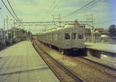 | 東急電鉄3000系。1975年田園調布駅近く。 | 東急電鉄8000系。1975年田園調布駅。 |