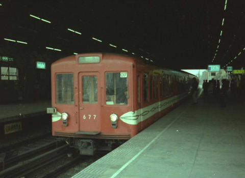 | 営団地下鉄丸の内線300系。1975年茗荷谷駅。 | 西武鉄道501系。東村山駅近くの踏切。1976年。 |