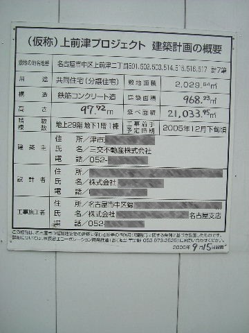 2006年4月15日。現場の看板。新聞等で は高さ103mとなっていたがここには97.7 2mと表示されている。 |