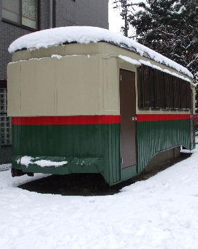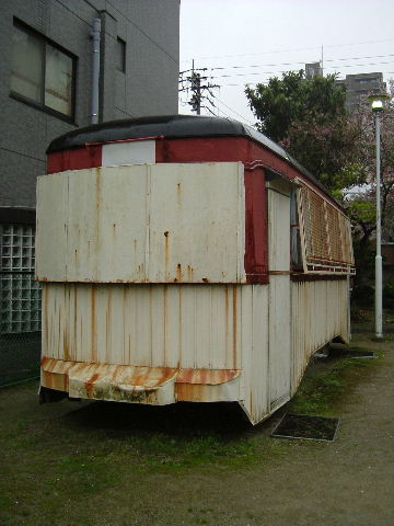2006年4月15日。南向いの公園には市 電の車体を使った集会所の様なものが ある。 |