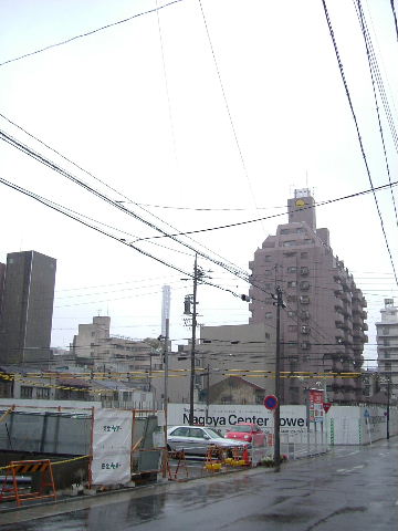 | 2006年4月15日。大須通りの中保健所前 から南を見る。こげ茶色のビルの向こうに 立ち上がってくるのが見えることになる。 |