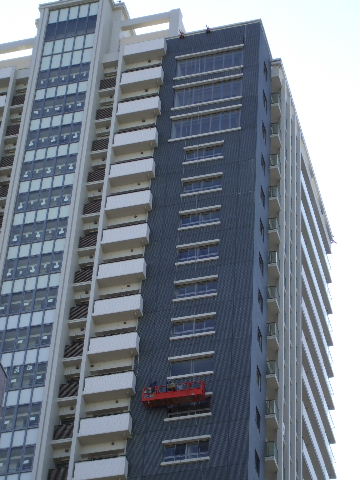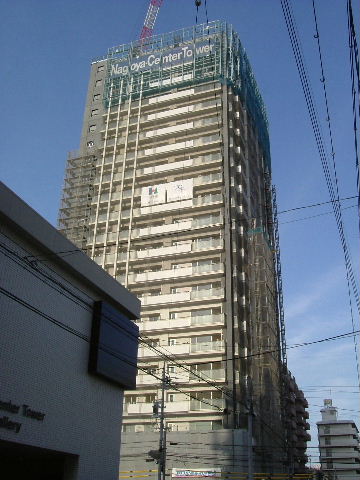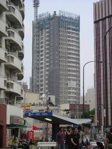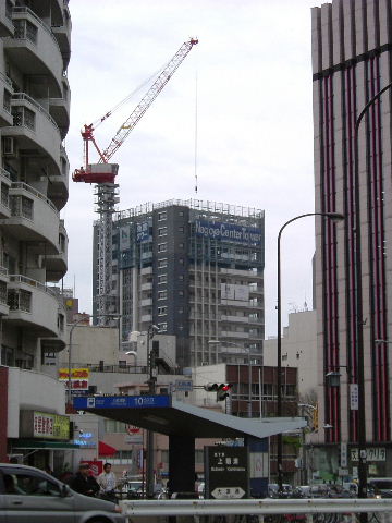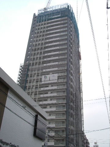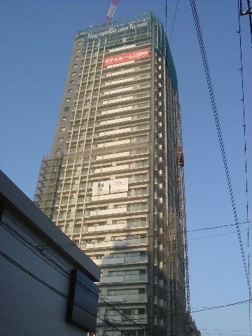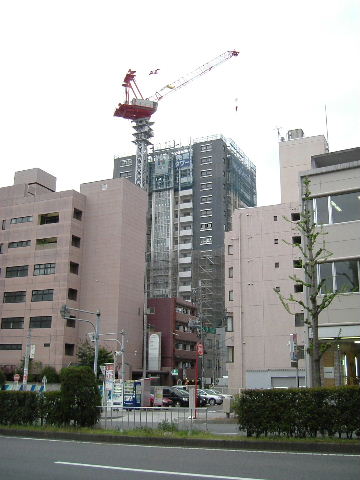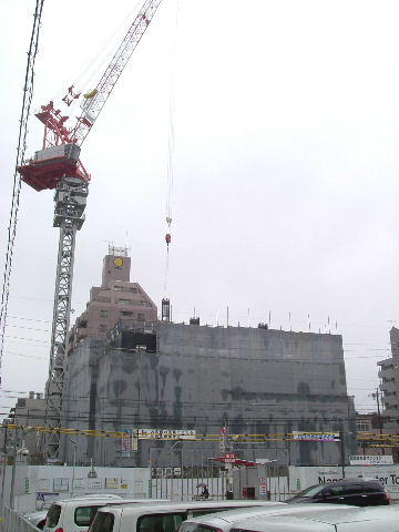 2007年1月8日。6階に掛かり始めた所。 少し、黒っぽいタイル貼りの様な外観が 見えている。 |