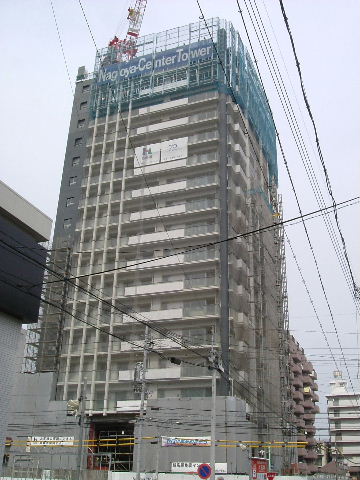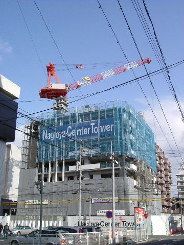 | 2007年1月27日。8階まで出来ている。上 にも「Nagoya Center Tower」の文字が 入った。 |