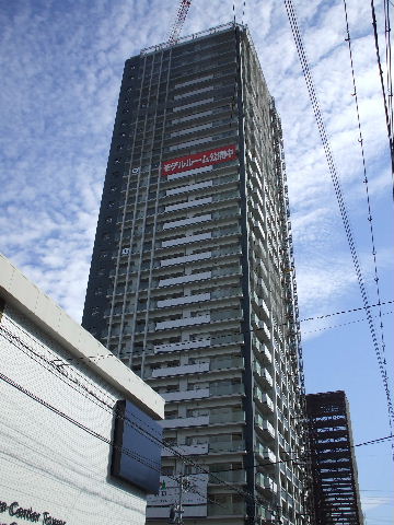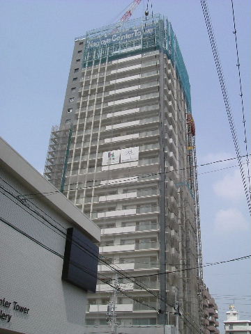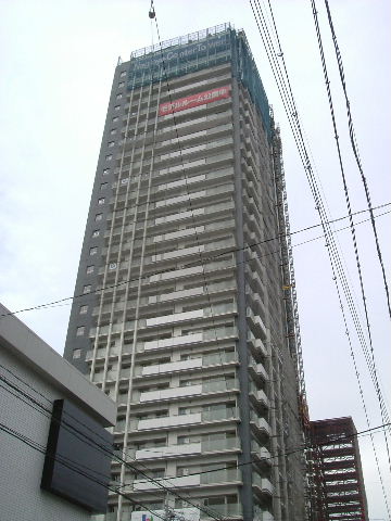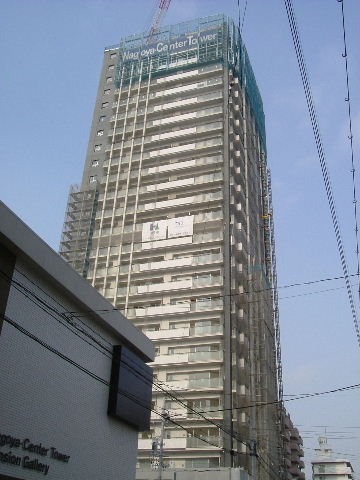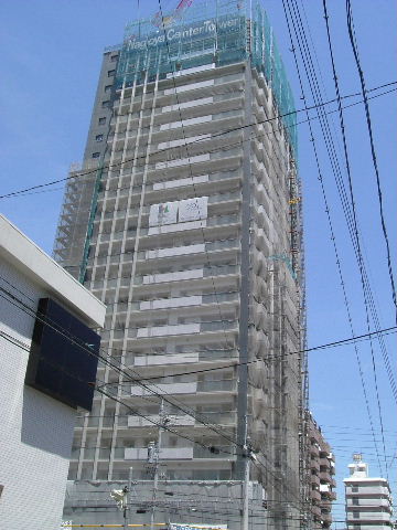 | 2007年8月18日。最上階。北西から。 | 2007年9月15日。外装も一番上まで。 | 2007年9月15日。東側に駐車場塔。 |