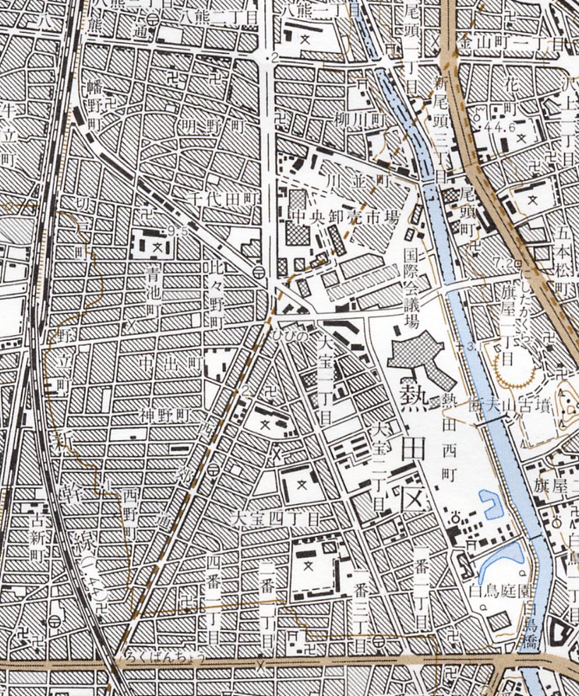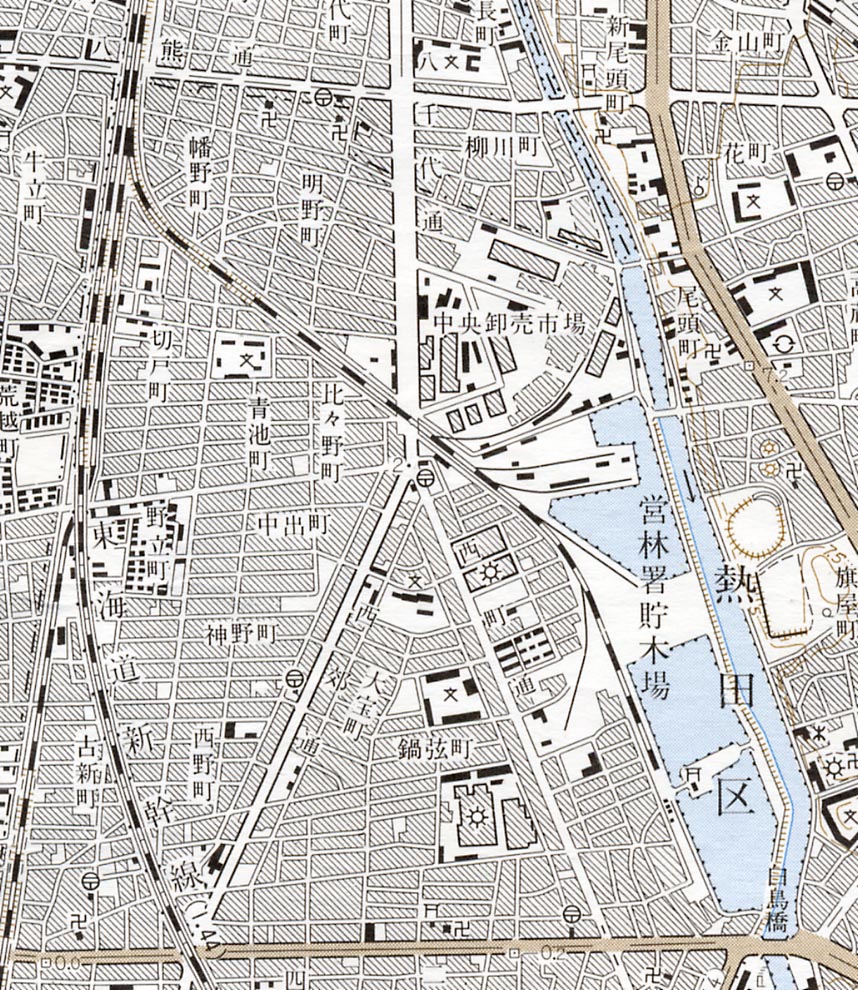 左: 国土地理院二万五千分の一地図(昭和五十一年)「名古屋南部」