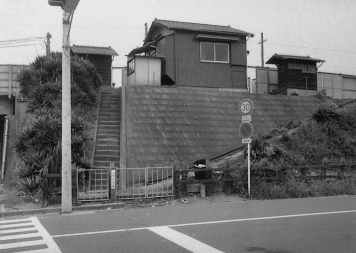 12 青池町地内。このトンネルは1960年代後半,主にこのすぐ南にある野立小学校の通学用に作られたものである。これが出来る前は土手に古木材で土止めをして作った階段があり、線路を跨いで向こうへ渡るようになっていたが通学では通行禁止になっていたので小学生は江川通まで迂回して通学していた。今は路面だけが残って歩行者用通路になっている。