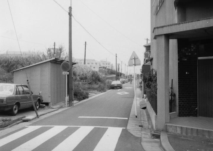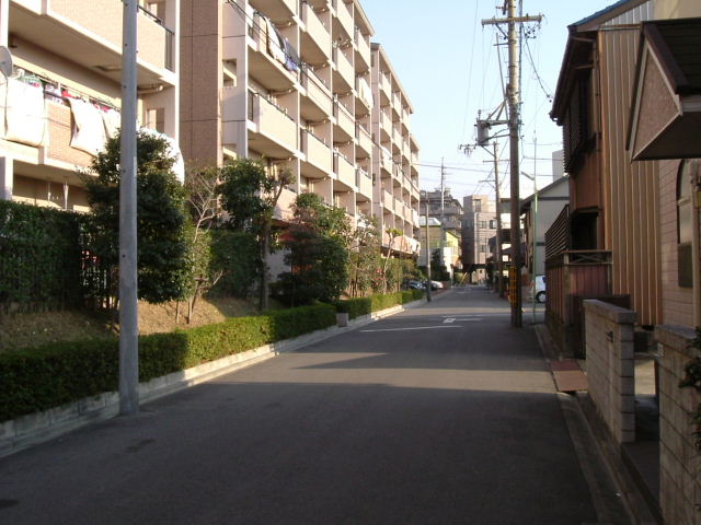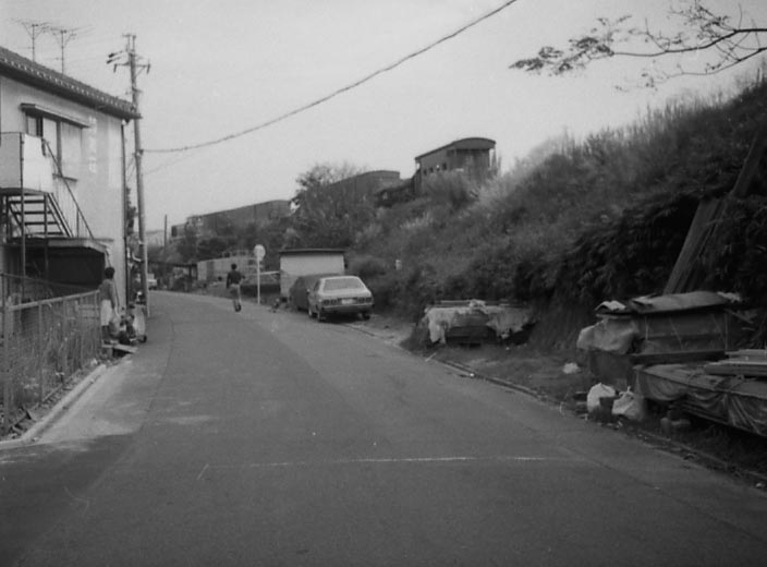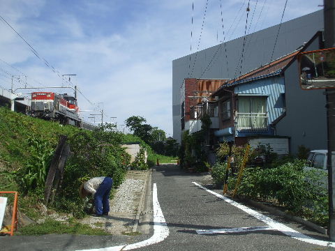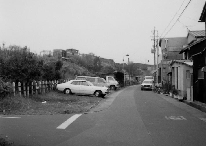 8 切戸町地内。単線だが斜面のある土盛築堤+両側に少し余裕のある敷地でマンションを建てるにちょうどいい幅だったようだ。