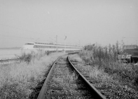 築堤へ上がって見る。左は白鳥線から八幡信号場方向を見ている。臨港線の向こうを新幹線が通る。右は白鳥へ向かう列車。手前、白鳥線と臨港線の間のスペースが整地されているがこれは新しく、以前はずっと草ぼうぼうであった。