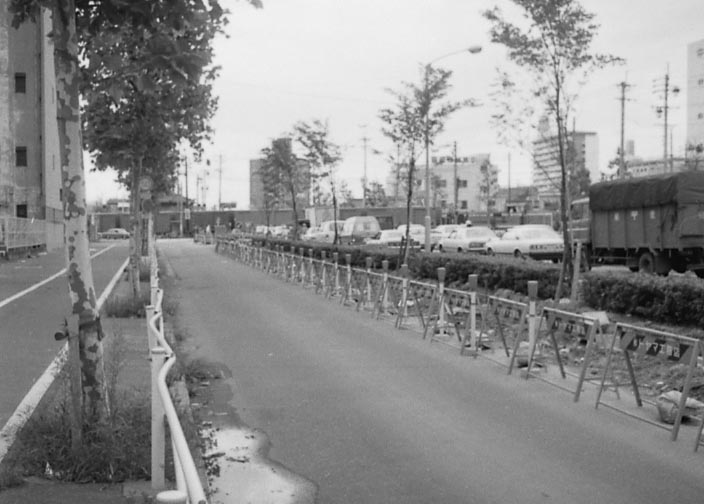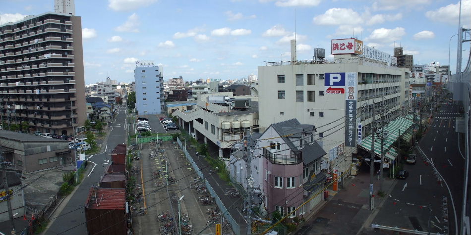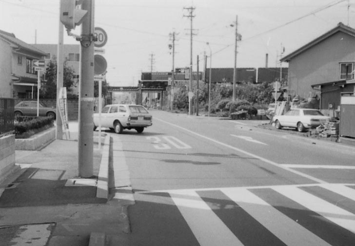 19 大体同じ位置、方向で撮ってあるがとても同じ場所とは思えない位の変りようである。現在の写真で右へ入る道が見えるが、これがかつて線路沿いの道だったもので場所は日比野交差点から少し東に行った所である。
