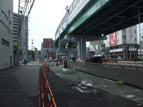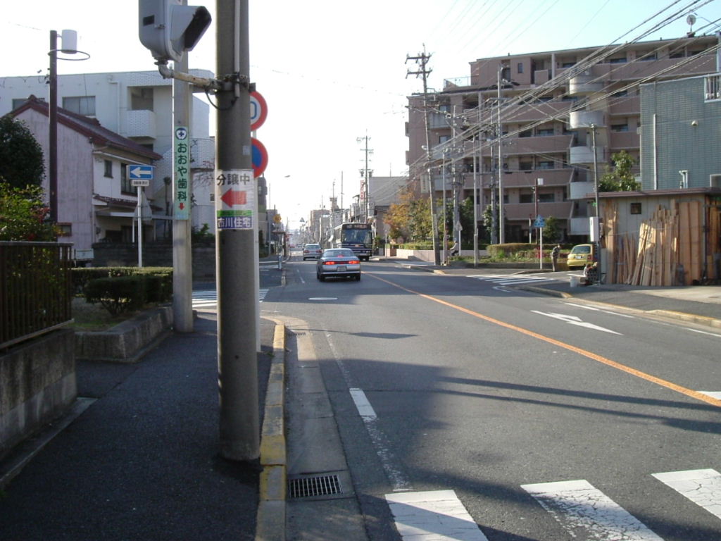 4 幡野町地内。このトンネルを抜けると切戸町ですぐ先に臨港線と新幹線のガードがある。築堤が撤去されてこちらからも見えるようになった。3の写真の交差点の左方向を見る。