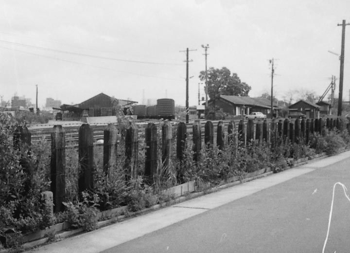 17 比々野踏切から東へ11の写真の線路沿いの道を行った突き当りにこの入口があった。今は中央卸売市場構内で近づけない。