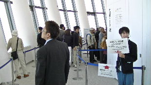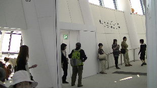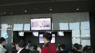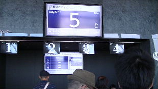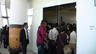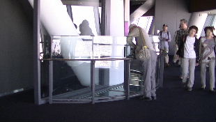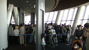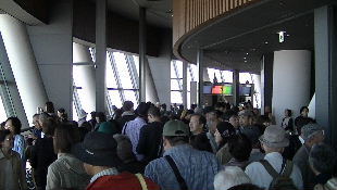 しかしこのフロアで先に見ていると混んでくると予想し先ずさらに上の展望回廊へ。今なら まだ待ち時間5分。 |